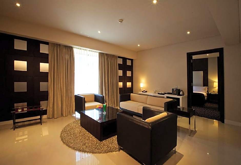 This spacious suite consists of 1 living room, 1 separate bedroom and 1 bathroom with a walk-in shower and free toiletries. This suite is air-conditioned and features a seating area with a flat-screen TV, a mini-bar, a tea and coffee maker, a wardrobe, as well as a safe deposit box. The unit offers 1 bed.